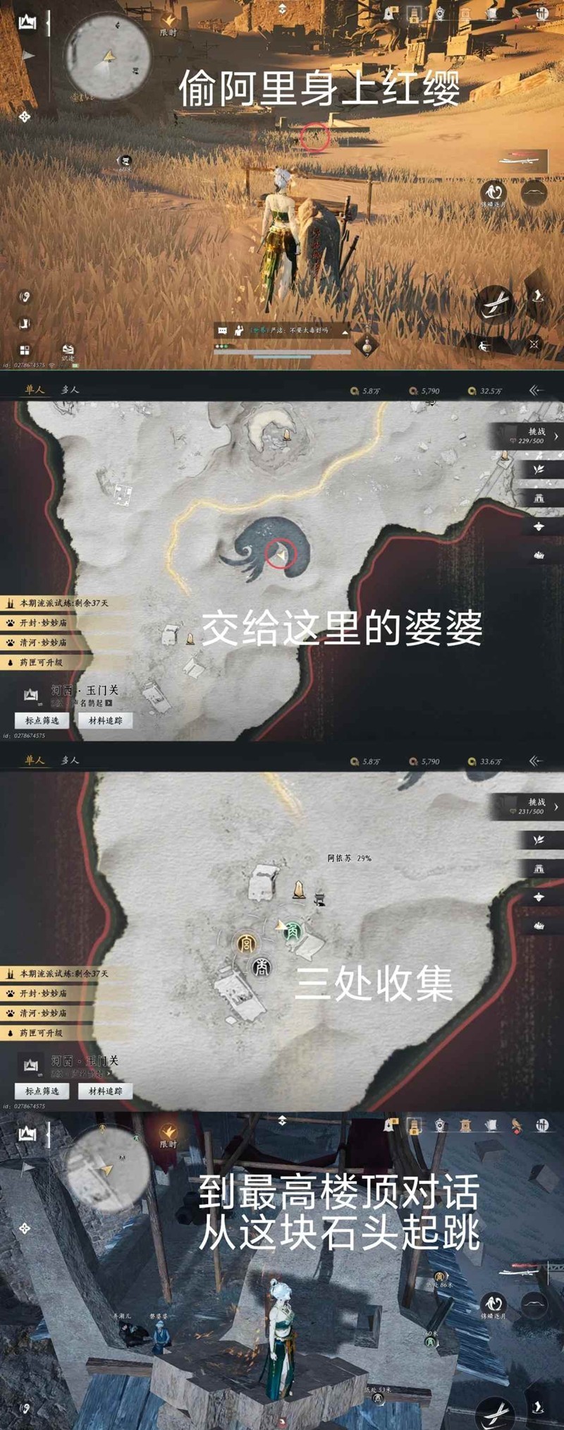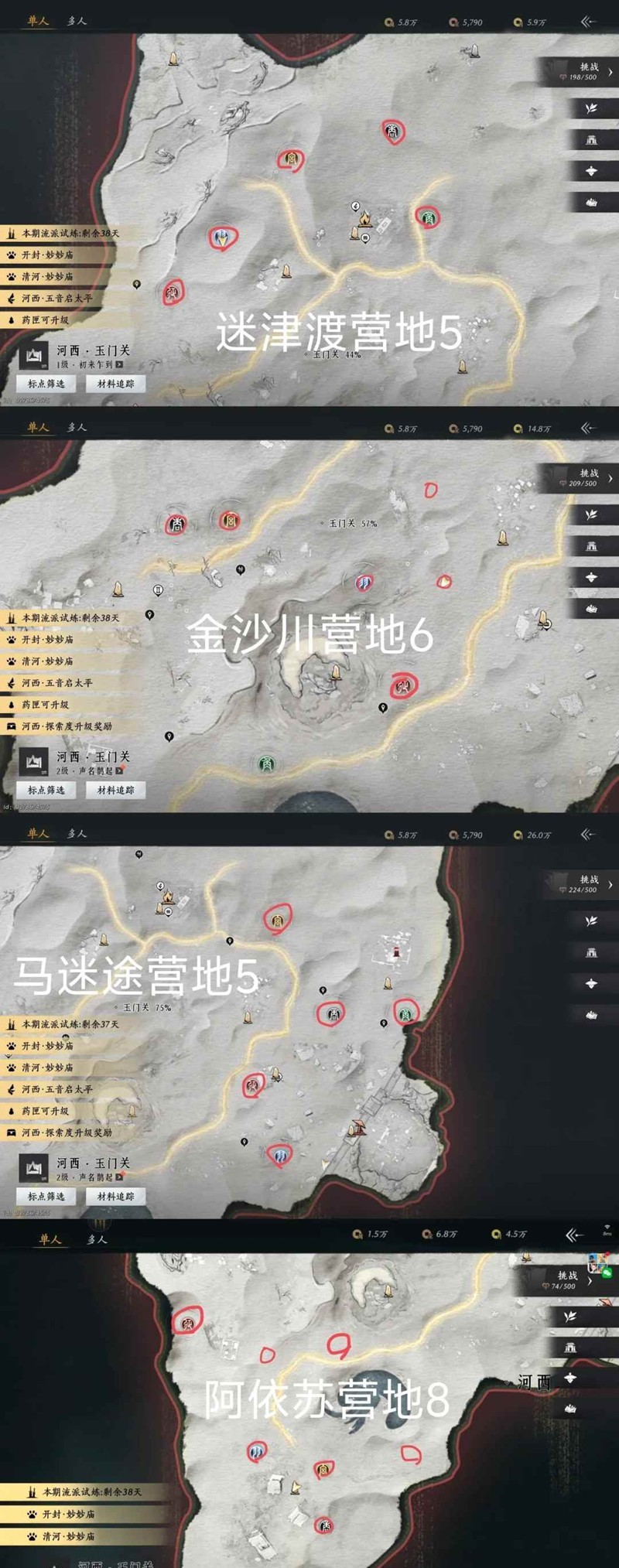 6. 所有驼铃自查,计入探索百分比,每段脚印需触发完全。