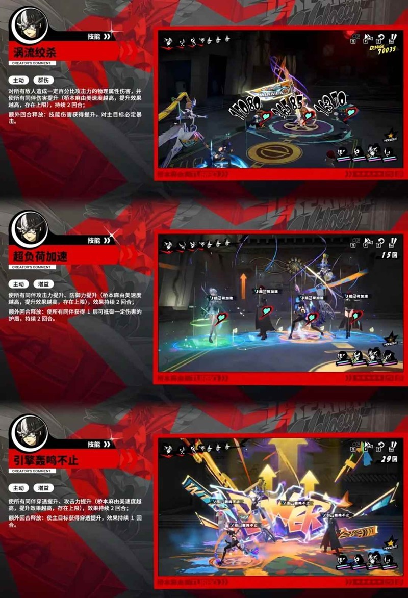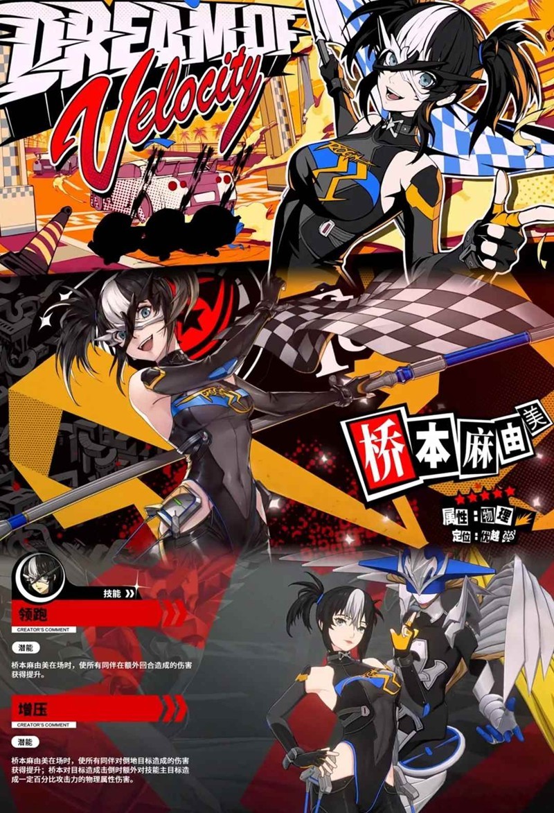 核心意识:回合开始时获得一定时速,每个怪盗回合结束时都能让赛车妹叠时速,变速箱能将部分时速转化为再动能量使赛车妹能打出额外回合,根据历史时速累积开启急速光轮,级数越高队友吃到的穿透越高(上限三级,二意识时额外获得攻击、伤害加成和暴伤)