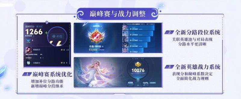 英雄战力系统优化:表现分上限随段位提升而提高,战力计算滚动更新,选取表现最好的60场比赛。