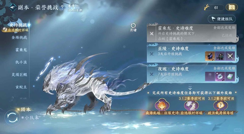 逆水寒是一款武侠题材手机游戏,游戏中副本需要玩家达到该副本要求的等级后才能进入,完成副本可获得副本相应奖励。副本分为每日历练和每周挑战两类,玩家可通过菜单中的副本项进行查看。那么游戏中史诗挑战应该怎么完成呢?小编为你准备了一份攻略,一起来看看吧~
