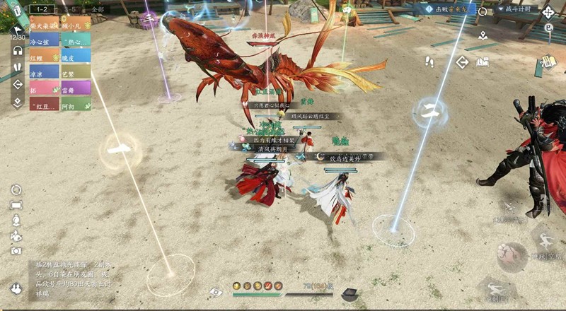 进入下一个机制 铁衣将两boss分别拉到安全区 红蓝相互站一起进行抵消伤害 建议给解控或者铁衣给铁壁qte 没被点名的不要与点名的站一起 比较痛 然后分摊 踩圈 后续龙虾进行拍浪