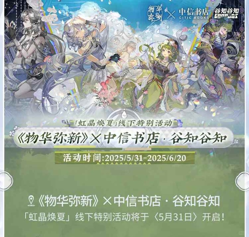 联动情报|物华弥新x中信书店 线下特别活动《物华弥新》×@中信书店 @谷知谷知GOOOODS 「虹晶焕夏」线下特别活动将于<5月31日>开启!