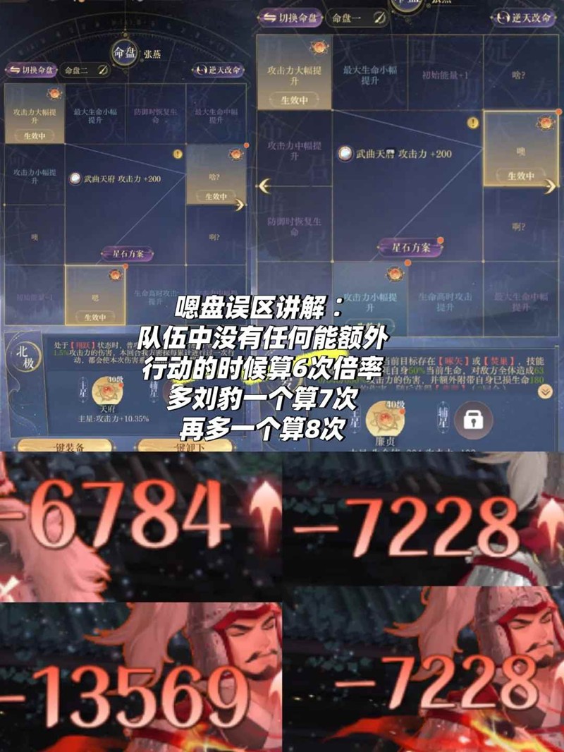 队伍中没有任何可以额外行动的时候让张燕最后一次行动是算6次倍率就是说是96%比没洗盘的100%少一点点而已