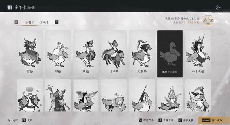 刷鹅的卡:神秘画师绘制了一组特定人物的童年小像,并经九流门设计进行了艺术再创作。游侠在各个镇守处搜罗一番,或有意外之喜。