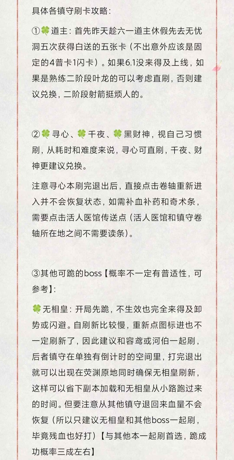 首先,卡是打完自动弹出奖励框,不需要花心力领奖励。所有boss必须至少打一遍,获得至少一张白卡,然后装备奇术黄金膝开始刷卡。