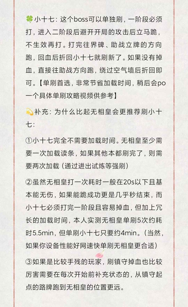 个人选择直刷了千夜和黑财神外的所有boss,然后主刷小十七换了两张卡,还是比较舒适的,可参考。