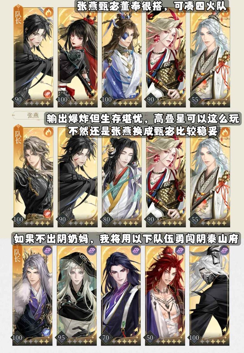 同时从命盘里可以看出张燕可搭多次行动的队友,这个多次行动不是指张飞孔融砍三刀,或者张邈助剑这种多段攻击伤害,而是指夏侯惇大招/刘豹放大后的两回合/sp登雨顺这种重新动的类型,等队友中