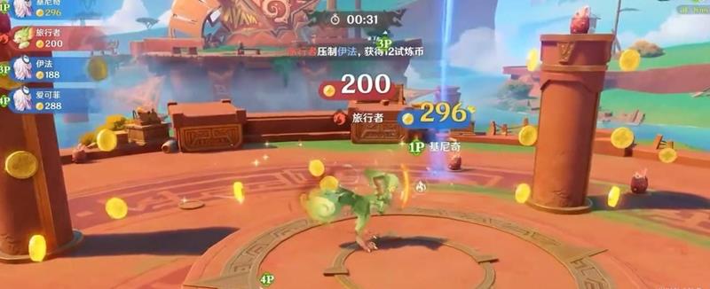活动开启首日就会解锁全部5种不同类型的挑战玩法。每次进入挑战时,系统会自动为旅行者匹配3名队友,并随机分配一种挑战模式。每个挑战都包含3个回合,每个回合又分为"珍币之争"和"龙之攻势"两个阶段,旅行者需要在两个阶段中尽可能多地收集"试炼币"来提升最终评分。