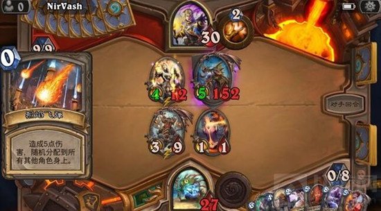 60血的时候,对全场随从打30,然后自己恢复30点生命,最后自身攻击从5涨到10