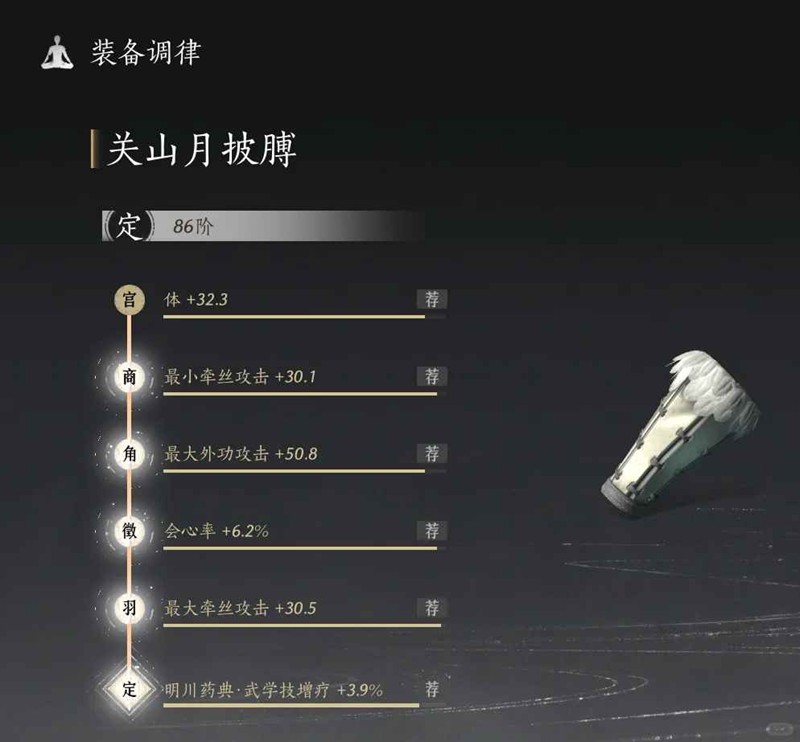 词条推荐:优先堆武学天赋,都生效100%后再堆其他词条。敏>会心>属外>小外>精准>其他(会心注意不要溢出)