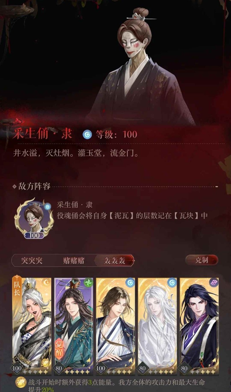 《如鸢》是一款基于汉末历史背景的架空改编的手游。在游戏中,玩家是女扮男装的“广陵王”,作为密探组织“绣衣楼”的首领,一边招贤纳士,一边周旋于几大权谋势力之间游戏以策略卡牌和沉浸式剧情为核心玩法,共有傅融、刘辩、袁基、左慈、孙策五位男主,玩家只需完成指定任务和剧情对话就能快速通关。那么游戏中无豹应该怎样打过泉下井五关呢?小编为你准备了一份攻略,一起来看看吧~