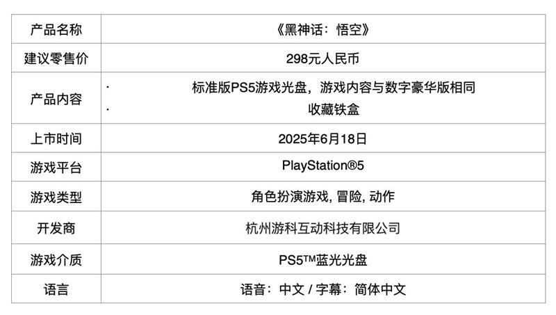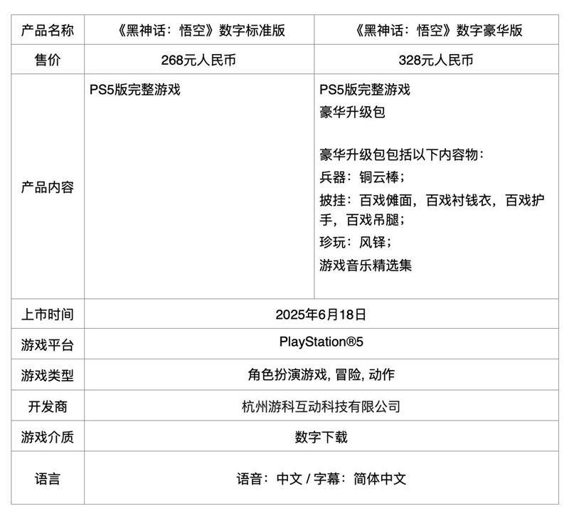 国产3A大作《黑神话:悟空》即将登陆PS5平台。索尼互动娱乐今日正式宣布,游戏国行版将于6月18日发售,包含数字标准版、数字豪华版以及实体铁盒版和徽章版等多个版本。