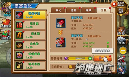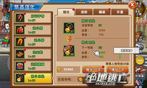 《绝地逃亡》同名手游改编自成龙、范冰冰主演同名电影,由万家文化旗下万家游戏倾力打造,是一款高品质的3D动作格斗类手游。游戏拥有高水准的电影级画质表现,并将原汁原味的电影剧情、明星角色和丰富场景融入其中。在动作表现方面,更是完全捕捉电影中真实打斗镜头,完美还原成龙在电影中的一招一式,让玩家可以在游戏中体验到最正统的龙式功夫。今天小编就要为大家介绍《绝地逃亡》手游中的特色装备系统,装备系统分为强化、进阶、镶嵌、升星四大功能。下面小编就为大家详细介绍一下这四大功能的作用及使用技巧。