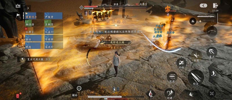 3.明王怒相:随机点名2~4位玩家(见P3),然后被点名的会有红光显示,头上也会有田英大头显示(见P4人机队友)被点名的人躲进法阵里(如P3),然后田英会在法阵里发起致命打击,请摧毁法阵