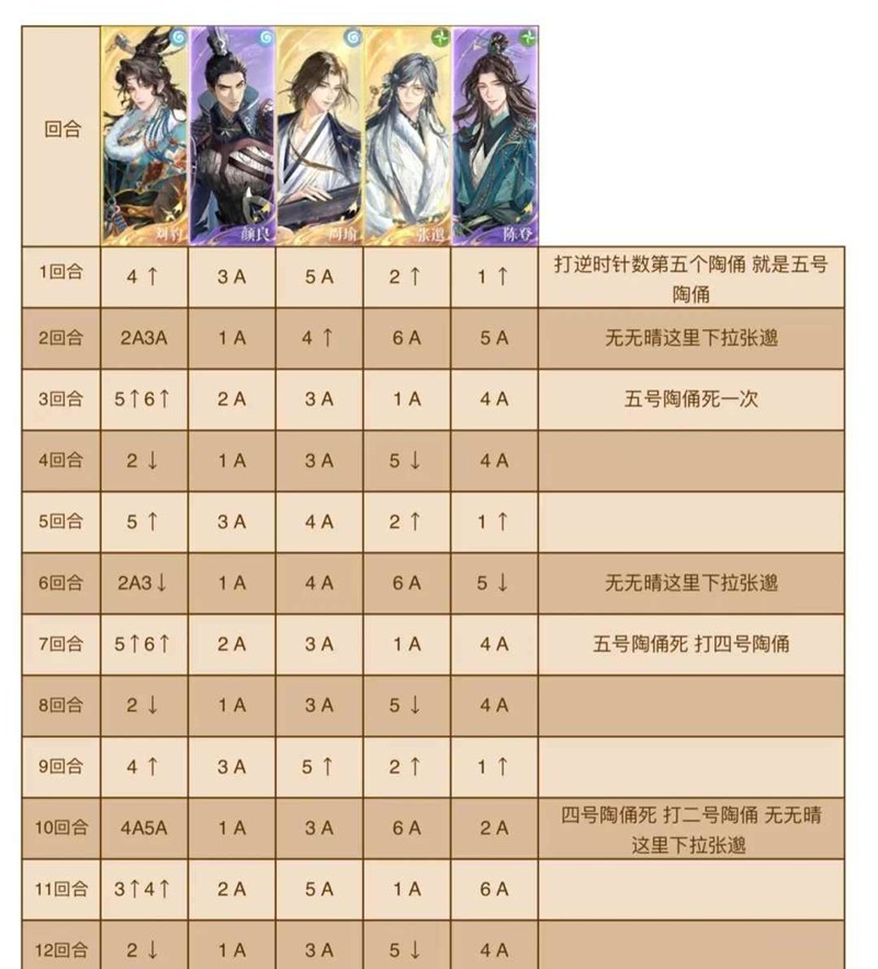 三号位密探不能下拉,否则对面会回血。boss大招回合要求全员有盾,因此需要二星邈/荀彧等间接给三号位加盾/颜良a后带盾/史子眇放大后带盾,缺密探的宝宝根据思路自行调整配队。