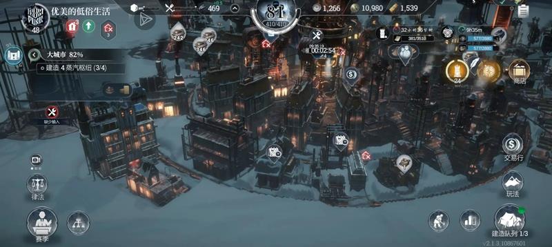 蒸汽枢纽:中期解锁后覆盖 3 个街区,减少 30% 煤炭消耗,优先连接医疗站与托儿所。
