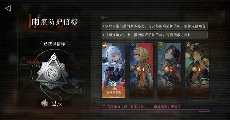 本次助战角色非常强力,约等于白送薪血队和电能队。雨迹追查就是塞梅诺谛卡二带三,诺谛卡固定五号位(消失的主人可以考虑四人队,不要五号位不然会跟塞梅抢术阵)。