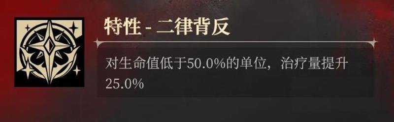 二律被反是苍凛的单体治疗技能,能够为生命值低于50%的队友恢复25%血量。这个特性让苍凛在危急时刻能够精准救助濒危的队友。