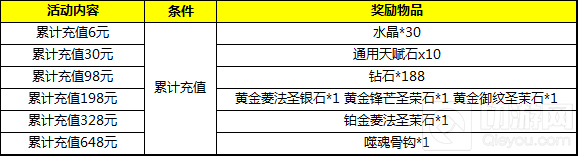 福利提示:每日充值活动可以和累计充值活动同享哦!(例如你在8月18日的每日充值中充值198元,不但可以获得每日充值的全部奖励,还能获得累计充值活动的通用天赋石*10、水晶*30、钻石*188,黄金菱法圣银石*1 黄金锋芒圣荣石*1 黄金御纹圣茉石*1奖励!)