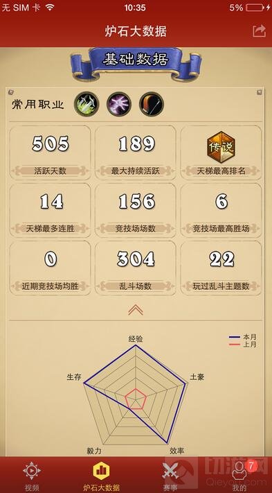 想知道自己的炉石实力能打败全国多少玩家?想与好友们比拼各式游戏数据?想查漏补缺,了解自己的长处和不足?“随身炉石传说”为你打造了专属页面,常用英雄、天梯排名、竞技场战绩……各种精确的数据统计帮助你全面了解自身实力,早日进军传说。