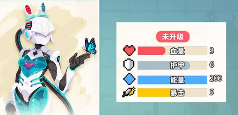 机械姬拥有4点基础生命值,这个数值在元气骑士所有角色中属于偏低的水平,意味着她需要依靠灵活的走位来规避伤害。7点护甲值能提供一定的减伤效果,220点的能量上限则保证了持续作战能力。5%的暴击率虽然不算突出,但配合特定技能能打出可观的爆发伤害。