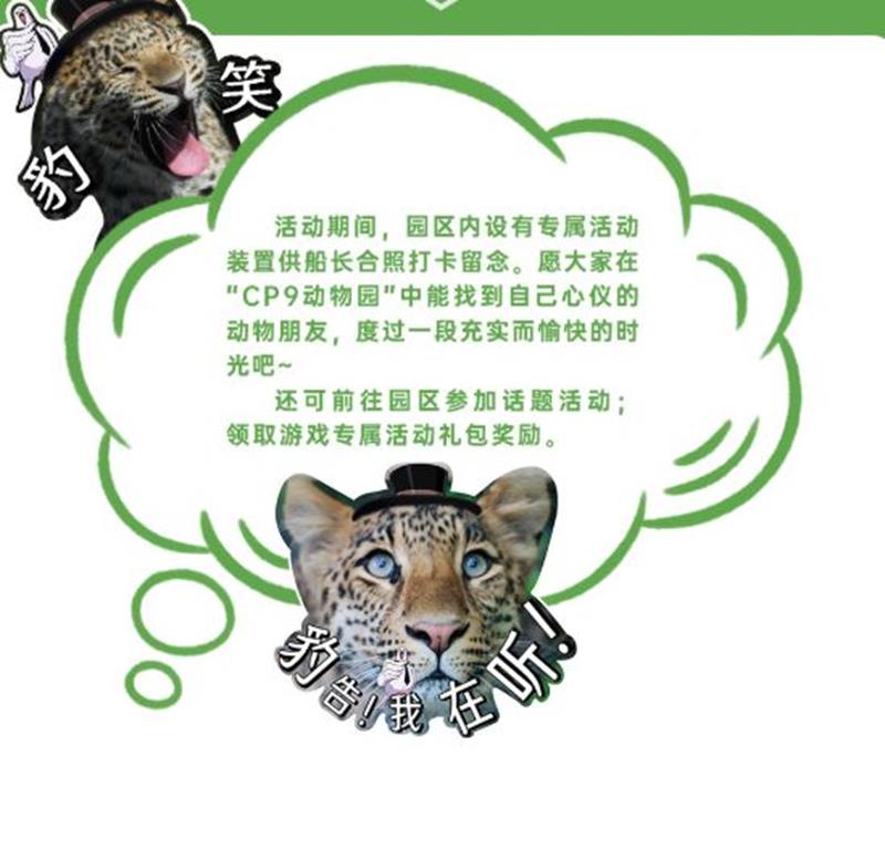 同时上海动物园园区内设置了丰富的互动环节。游客可以参与“CP9动物园”主题活动,通过完成任务赢取限定周边和游戏道具。活动现场还设置了多个打卡点,游客可以拍照留念,分享自己的联动体验。
