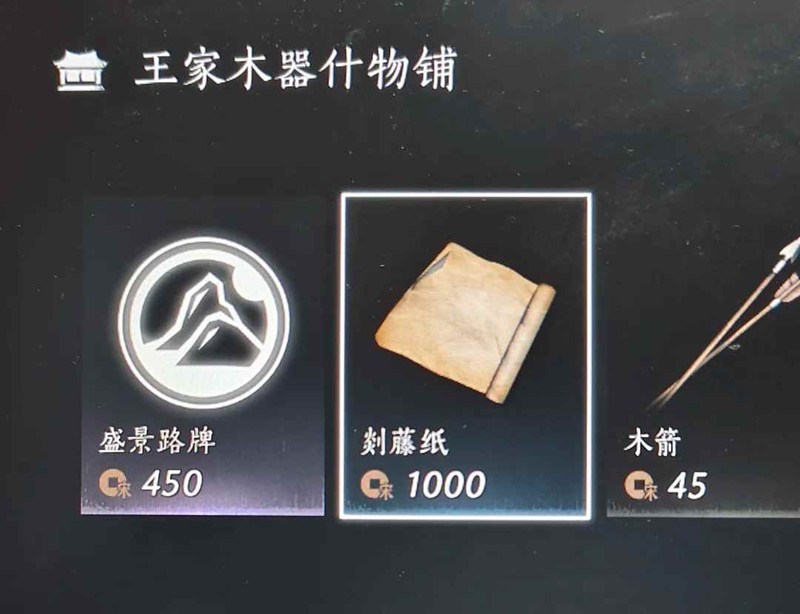 1.我们看一眼背包里有没有剡(shan第二声)藤纸(如图三),如果没有可以上图二位置寻找王家木器什物铺购买剡藤纸。