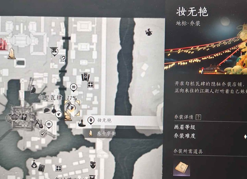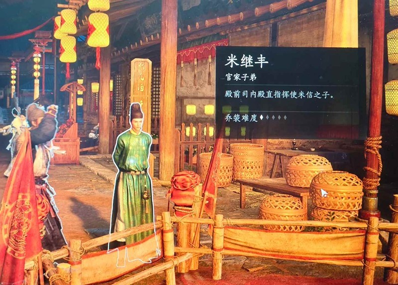 3.找到图五妆无艳进行乔装,最后回到图一位置投壶(需要注意中途不要在乔装对象面前经过,会被强行卸掉伪装)