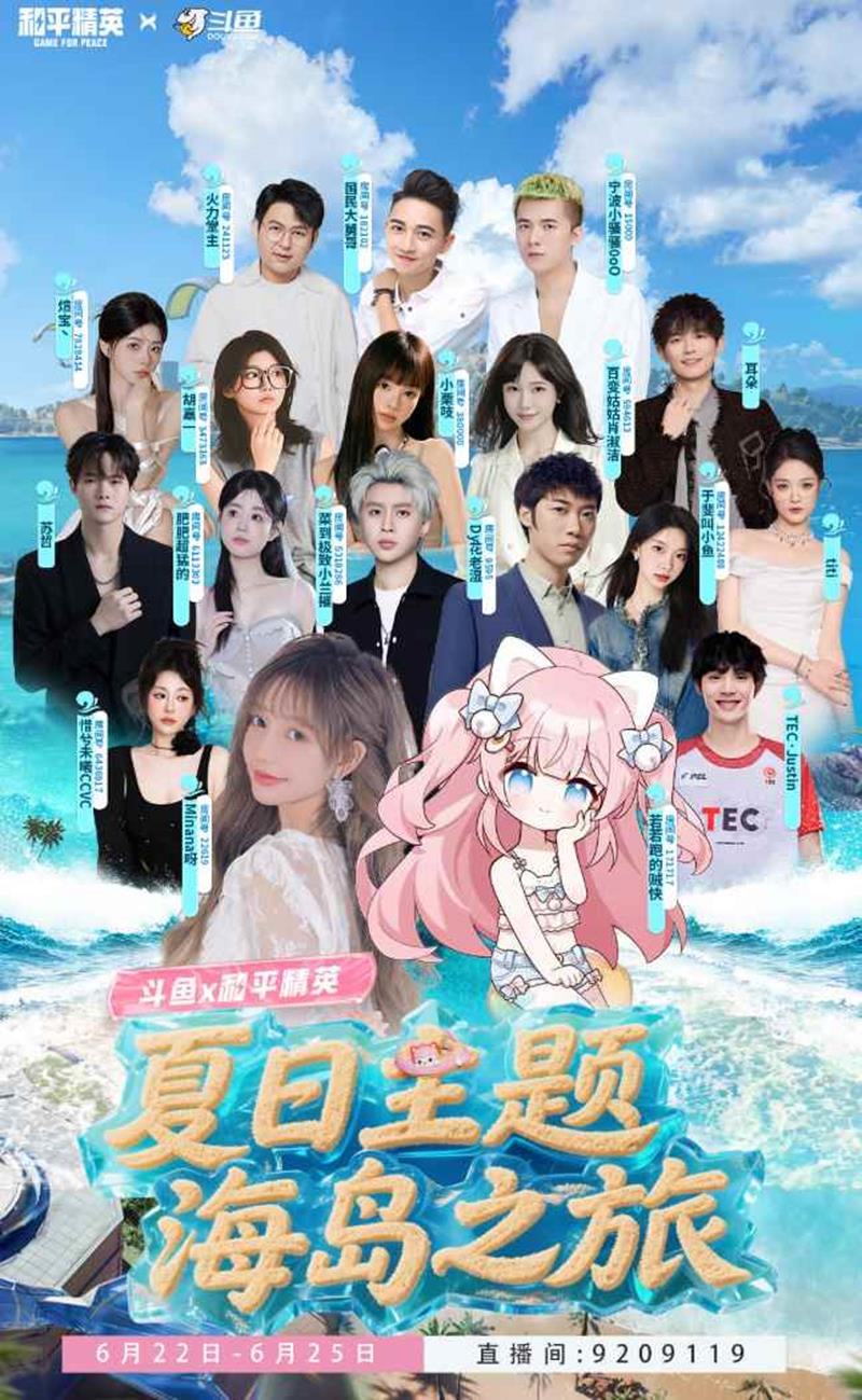 本次直播活动将前往三亚,开启为期4天的夏日主题海岛之旅。若若等多位全平台人气主播以及PEL选手和解说主持将齐聚一堂,带来精彩的游戏体验。