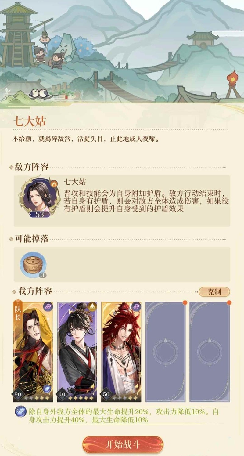 带阿蝉打第3关山大王,岔路口欧皇可以选南坡,每次遇到赌骰子会多送一个木盒(不管有没有赢)。运气一般的宝可以选北岭。BOSS山大王机制比较复杂,主页有跟打视频。小兵噶了会带走对应位置的我方密探,密探按照教程放。主c需要放一个在5号位,最后再打5号位小兵。如果中途不小心把5号位主c带走的话重开。先打阿蝉位对应小兵。