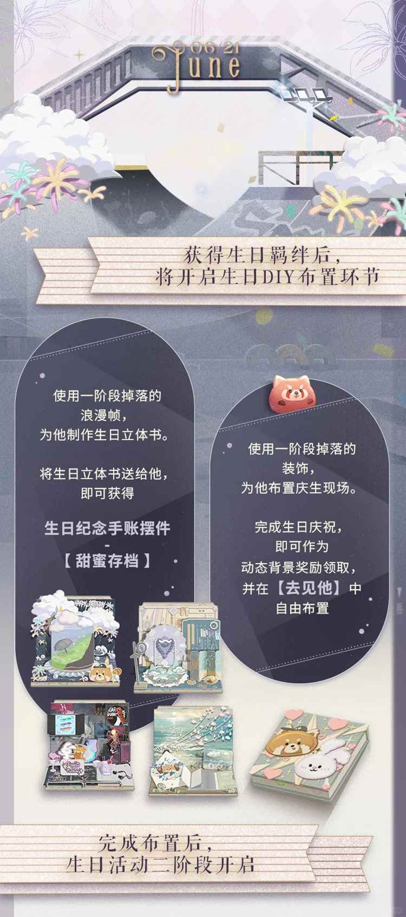 6月21日0:00~6月22日23:59期间,可触发他的特别庆生互动剧情。