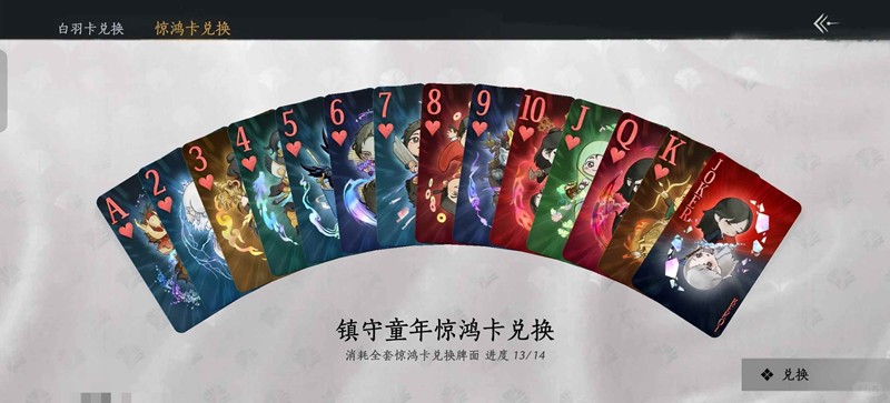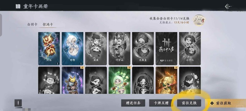 小号用碎片兑换大号需要的惊鸿卡,点击卡牌互赠赠送给大号