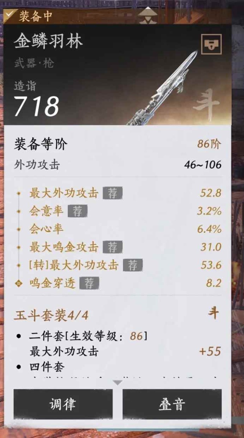 词条推荐:剑增伤,全武器增伤,劲,势,会意,会心,大外,大鸣金,外功防御。