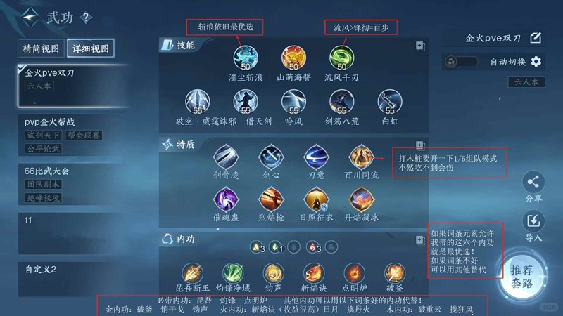 如果词条元素允许我图中带的这六个内功就是最优选!如果词条不好可以用其他替代