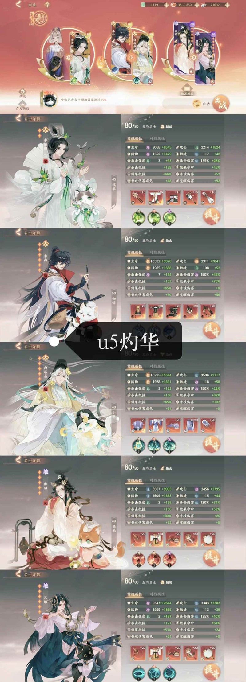 灼华:这关要用主c压血线,每个名士都要让李白开大打一下,把血线压低后面能毒死。然后我这个阵容比较平民灼华都没拉满,李清照也只有两星,有时候要多打几次反正靠点运气