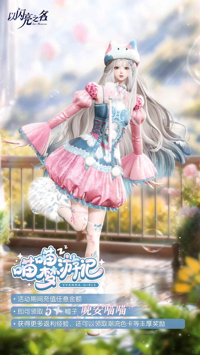 以闪亮之名喵喵梦游记,任意充值尊享超值回馈!与可爱阿喵一起陷入梦境环游吧~也许会带你找到宝藏!