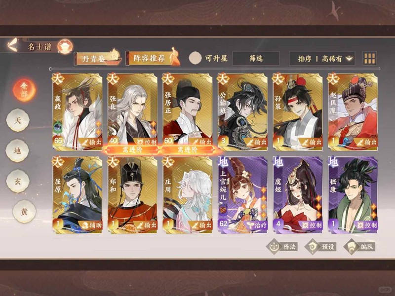 黄道婆,玄奘,戚继光,卫青,西施有着高额的生命值和敏捷,选择生命衣帽鞋子,防御武器配饰,能够很好的触发团棉减伤,其中西施玄奘还可以使用风荷(两颗真元的防御名士),提升生命值的同时还能提高自身/队伍的伤害。