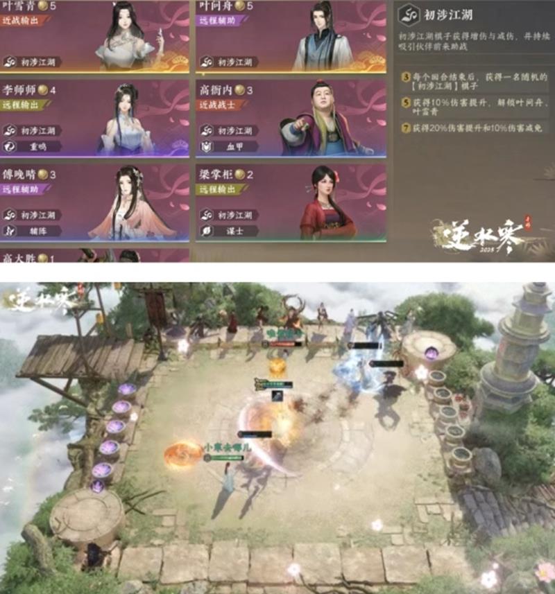这儿有您【初涉江湖】遇到的伙伴与冤家,问舟师兄和雪青师姐也将陪您作战:还有李师师、傅晚晴、高衙内.....Ta们聚在一起将持续吸引一位伙伴前来助战,正如其羁绊名【初涉江湖】很适合新手玩家使用。