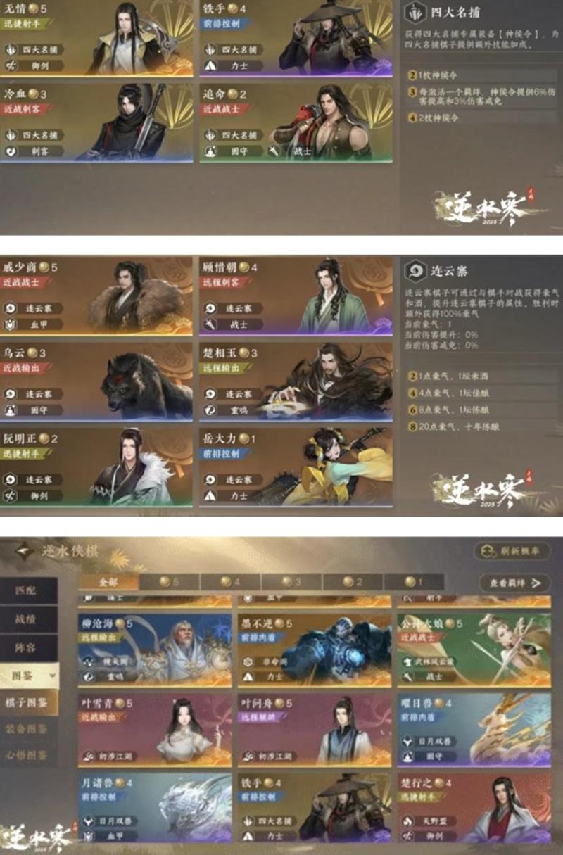 还有闻名遐迩的【四大名捕】、)戚大哥带领的【连云寨】弟兄、主持柳家大业的【镜天阁】墨不逆操控的【非命阁】诸、多江湖势力与风云人物汇聚于此,共同演绎一盘精彩的“逆水侠棋”!