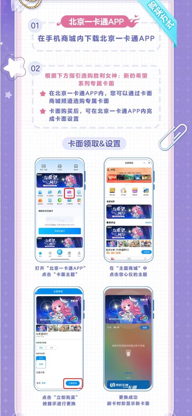 首先,指挥官需要下载并安装北京交通卡官方APP。打开APP后,进入商城页面,找到《胜利女神:新的希望》联名卡面,点击进入详情页面。
