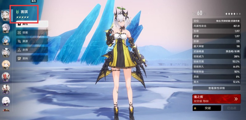 赛琪是止流流派的代表角色,拥有风属性输出能力。她的战技"茧中幻境"能够进行四段突进攻击,在造成伤害的同时还能减速敌人并施加印记。二技能"萤草为萤"可以进入飞行状态,强化后的战技能够发射16束追踪磷粉,对标记的敌人造成持续伤害。被动技能则提供了攻击力加成和生存保障,在低血量时触发减伤和护盾效果。
