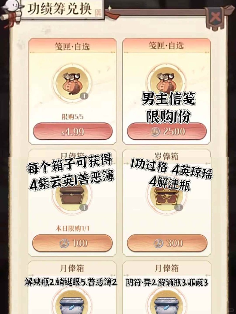 4.殿下获得的积分可以去崔烈手中换取俸箱子以及男主专属笺匣;