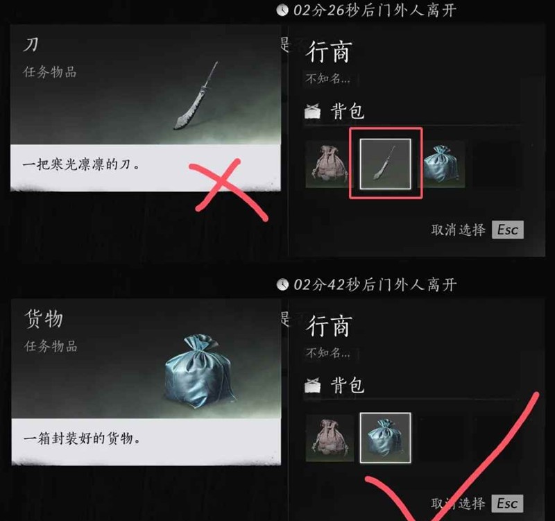 行商∶看见身上有刀直接叉出去,没刀的开门
