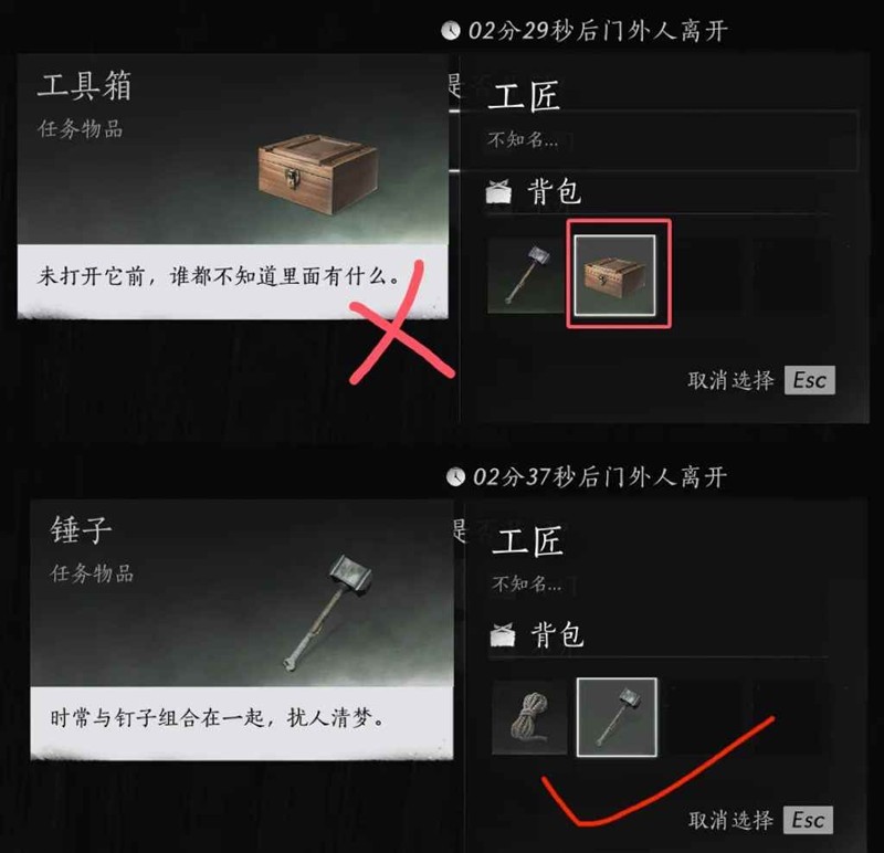 工匠∶只有带着锤子和绳子这两样东西的能进,带其他东西的不能进,工具箱也不行,镐子和钉子更不行