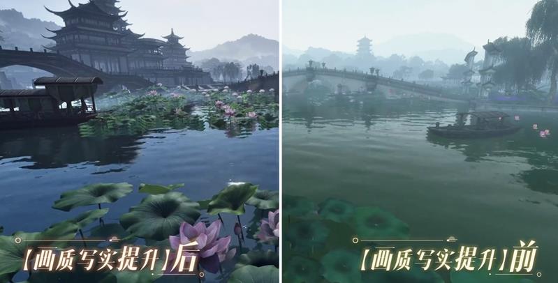 后续更新:3.0版本之后,开发团队将继续优化经典场景,如各大流派主城、桃花坞、镜湖等,逐步支持动态气雾、镜面反射、写实环境光影等效果。