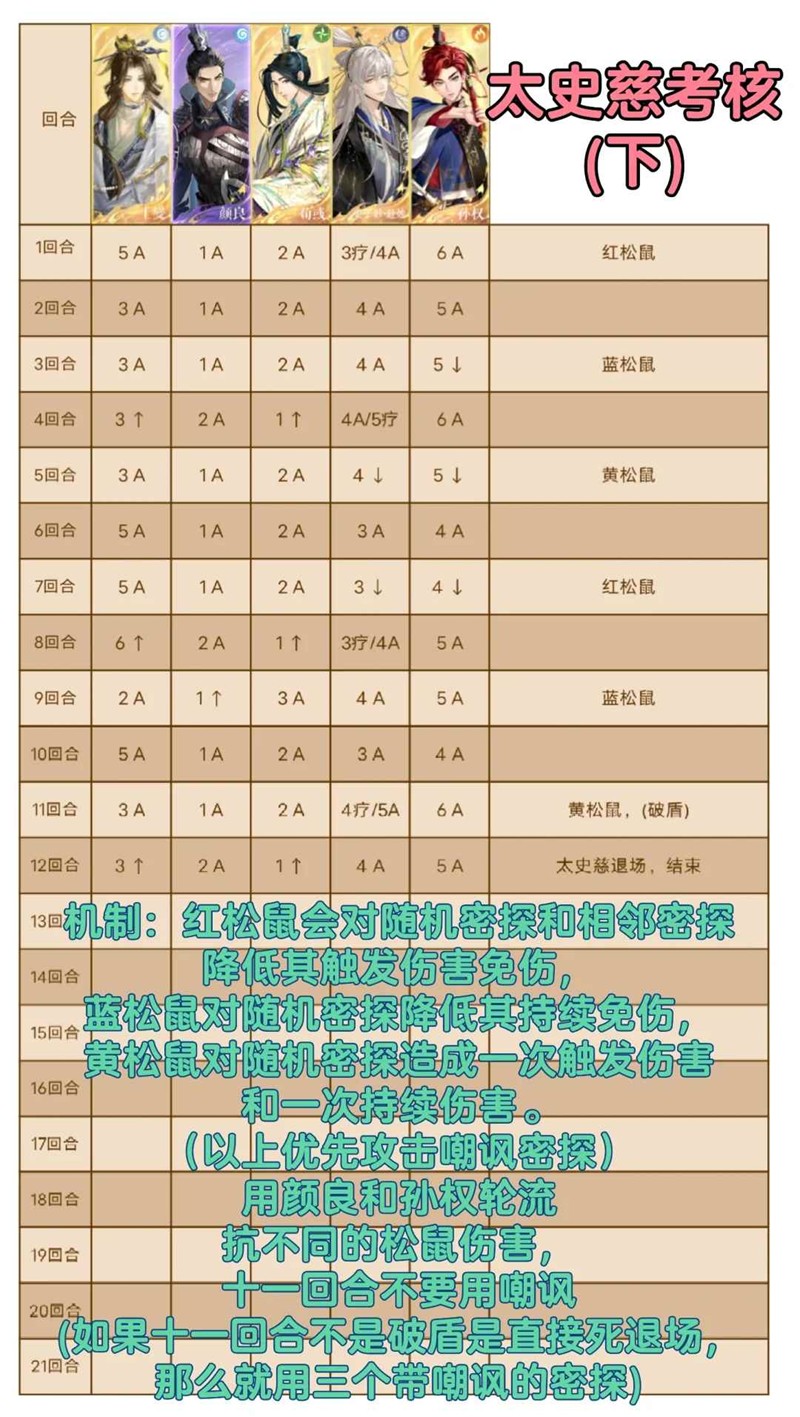 太史慈考核下配队机制表格