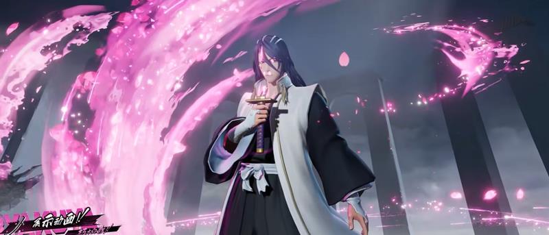 三技能:白哉施展卍解·千本樱景严,樱花飞舞,攻击范围的敌人