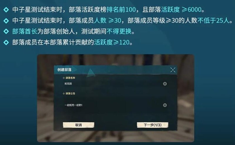 部落成员需要每日完成采集、战斗等任务来积累活跃值。活跃值越高,部落排名就越靠前。同时部落等级必须达标,成员数量不得少于30人,其中高活跃成员占比需达到25人以上。