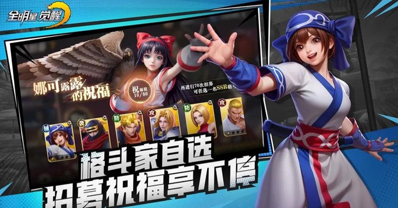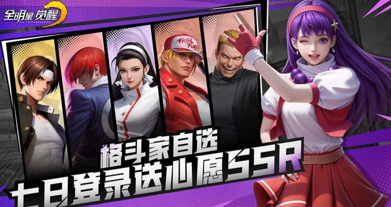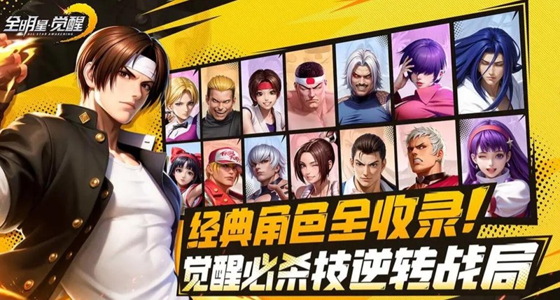 全明星觉醒是一款由SNK正版授权的策略卡牌手游,游戏汇集了拳皇、侍魂、合金弹头等经典IP中的50多位人气角色。玩家将扮演时空指挥官,在3D格斗之城中展开冒险,通过卡牌收集和策略搭配体验全新的格斗乐趣。
