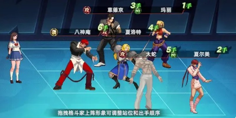 稳健生存阵容推荐大蛇搭配草薙京、八神庵、夏洛特、玛丽和夏尔米。这套阵容注重团队协作和生存能力,夏尔米的分摊伤害技能可以有效保护大蛇。豪华全能阵容则推荐大蛇与欧米伽卢卡尔、高尼茨、神乐千鹤、特瑞和卢卡尔组队,这套顶配阵容拥有恐怖的AOE输出和收割能力。